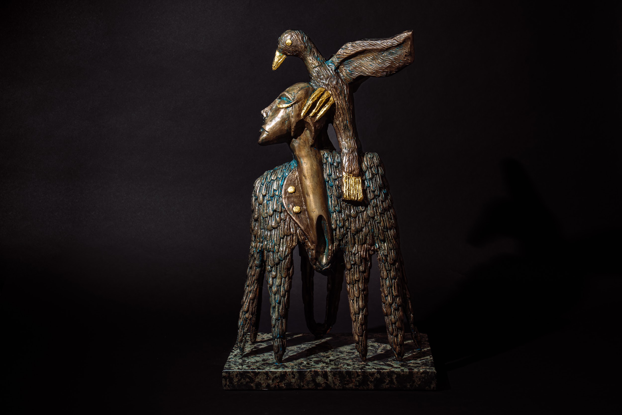 arrows-alt The DreamerMaterial: bronze, green granite, gold leaf, velour backing Height - 60 cm Weight - 17,7 kg 2025 Prague, Czech Republic