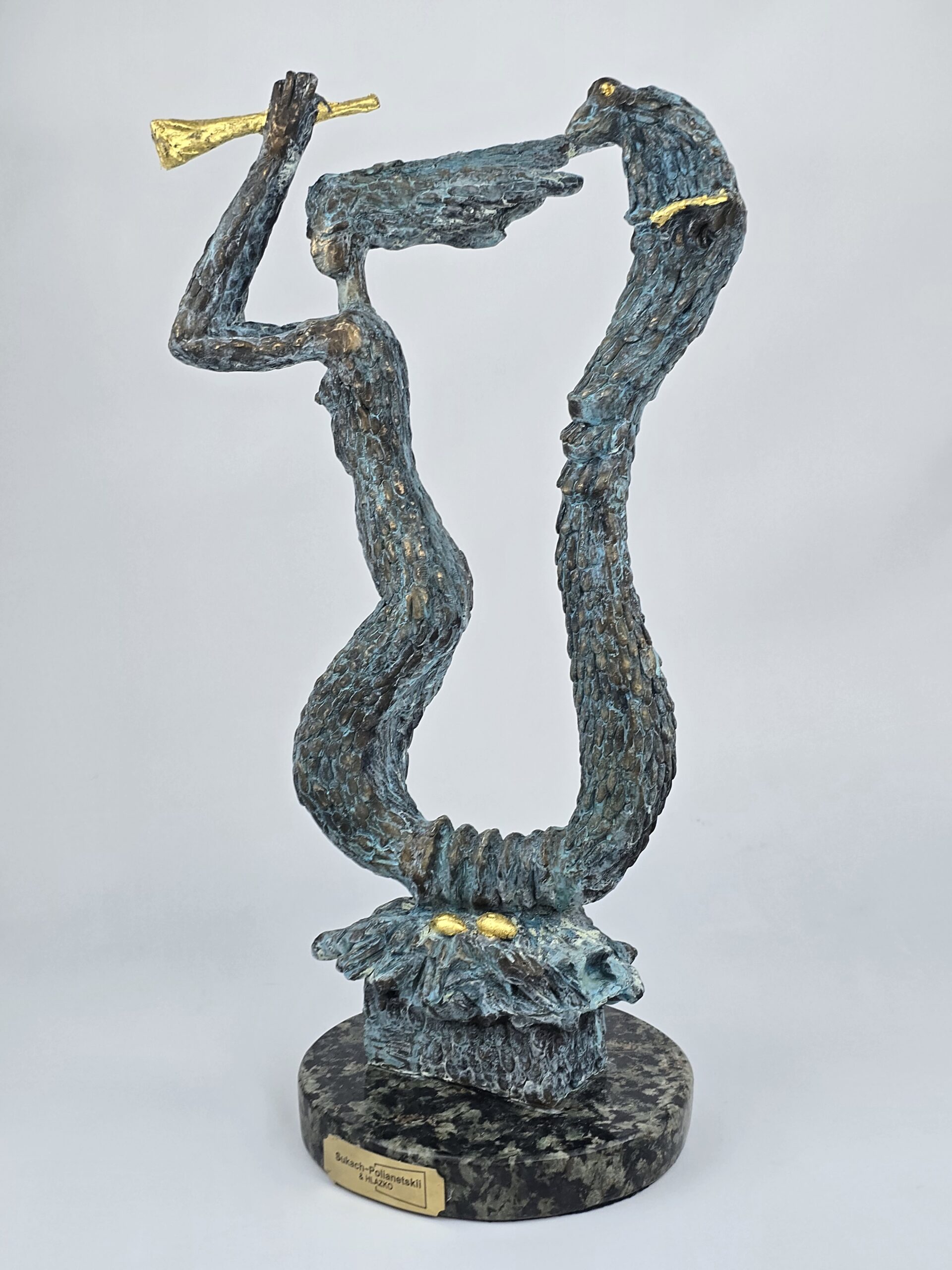 arrows-alt Beginning of the worldMaterial: bronze, green granite, gold leaf, velour backing Height - 40 cm Weight - 5,7 kg 2025 Prague, Czech Republic